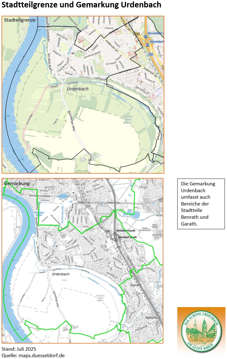 circa 4 km, mit dem Schwerpunkt auf Alt-Urdenbach, seiner historischen Bausubstanz und den gewachsenen Strukturen des Ortskerns.