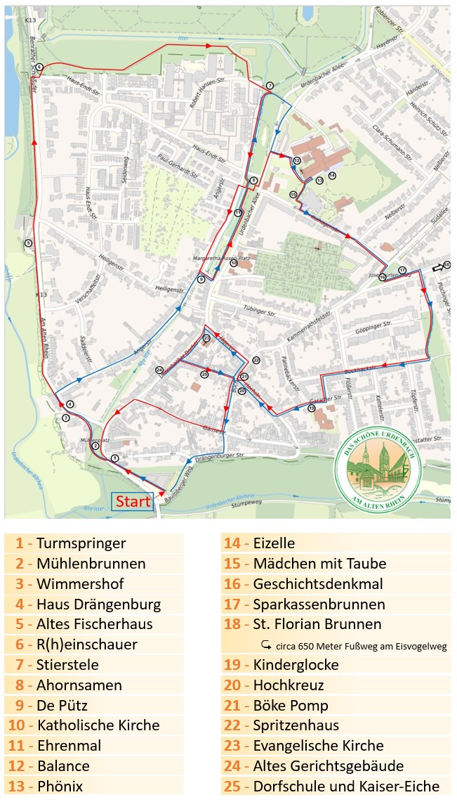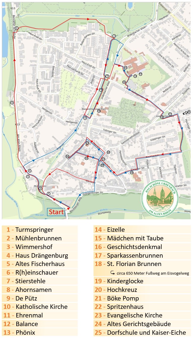 Der Verlauf des Pfades orientiert sich nicht an offiziellen Stadtteilgrenzen, sondern an dem, was Urdenbach für seine Bewohner ausmacht – so, wie Urdenbacher ihren Stadtteil fühlen und erleben. Dadurch entsteht ein authentischer Rundgang, der Geschichte, Kunst und Alltag miteinander verbindet.